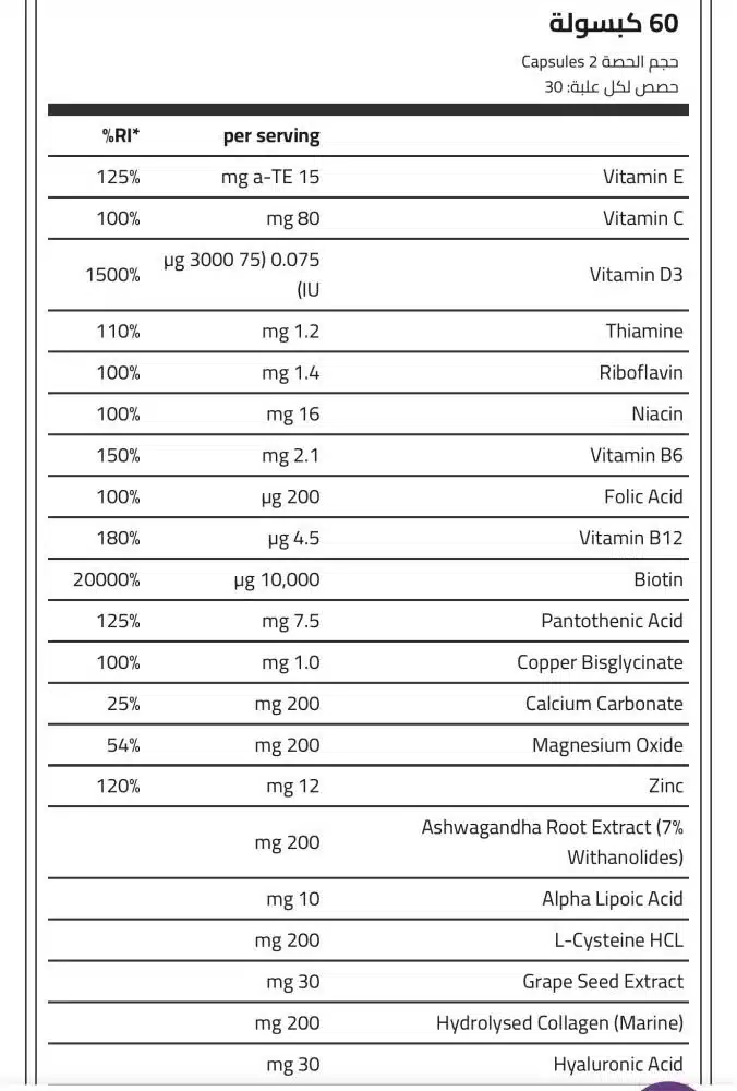 Zinc: To contribute to the maintenance of normal hair, skin, and nails.