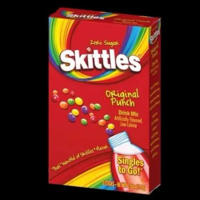 The product is a powdered Skittles Original Punch flavored sugar-free drink mix. The “benefits” associated with it are in the context of entertainment, hydration, and low calorie/sugar consumption, not in the context of nutritional health or high nutritional value.