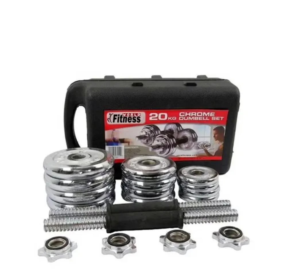 هذا الوزن طقم دامبلز 20 كجم 🏋️ يمثل الوزن الإجمالي لجميع المكونات في المجموعة (قضيبا الدامبلز، وألواح الأوزان، والصواميل القفل) عند تجميعها أو كقطع منفصلة.